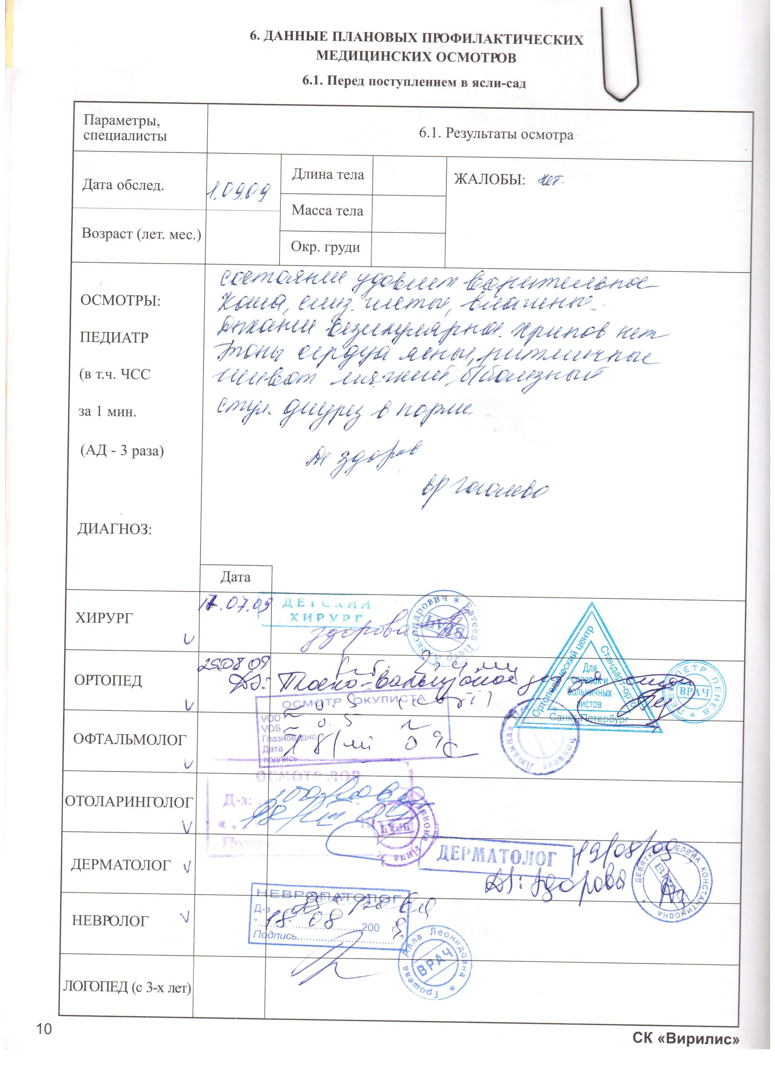 Медосмотр в детский сад