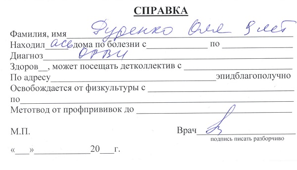 Справка после болезни