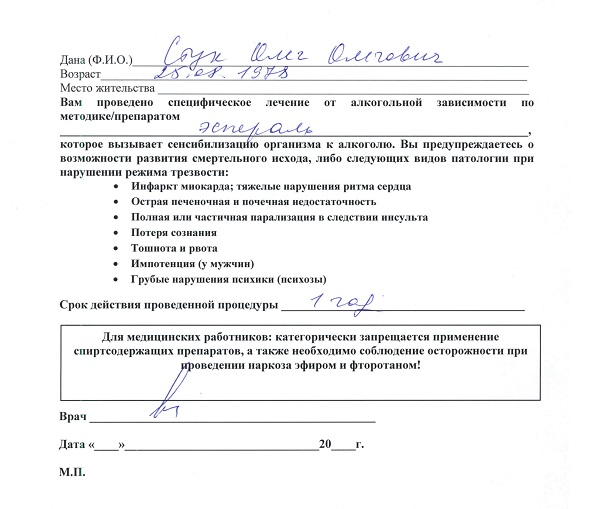 Также важно понимать, что иногда в жизни бывают случаи, что вы уже несколько лет назад были закодированы, а потом внезапно потребовался только документ. Чтобы получить справку о прошлом кодировании, придется отправляться в то медицинское учреждение, где проводилась процедура.