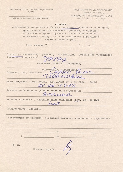Если вы пропустили учебу в школе или высшем учебном заведении, то решить вопрос с пропусками поможет следующий медицинский документ - справка 095 у. Благодаря данному меддокументу вы сможете официально закрыть все прогулы и получить пропуск к сдаче сессии. Кроме учебы справка данной формы позволит также решить вопросы на работе и избежать увольнения, если вы не смогли по каким-то причинам выйти на работу.