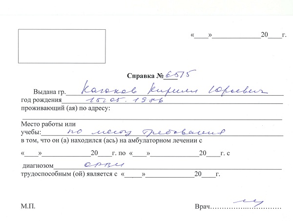 На готовом документе будут необходимые (оговоренные заранее) даты болезни. Также в обязательном порядке будет подпись лечащего врача, а также печать медицинского учреждения, которое существует на самом деле - то есть кто угодно сможет проверить документ на подлинность. Самое приятное здесь то, что вам даже не обязательно болеть: вы можете провести недельный отдых, а на работе показать справку о болезни.