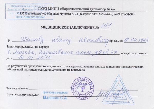 Если вы уже поняли, что получить справку от нарколога не так просто, как казалось изначально, то мы готовы прийти к вам на помощь. Мы можем изготовить полностью официальный и оригинальный документ в течение суток. Причем вам совершенно не обязательно иметь прописку в этом городе - это уже наши проблемы. Вам достаточно дозвониться до нас и оставить заявку, после чего начнется процедура изготовления справки.